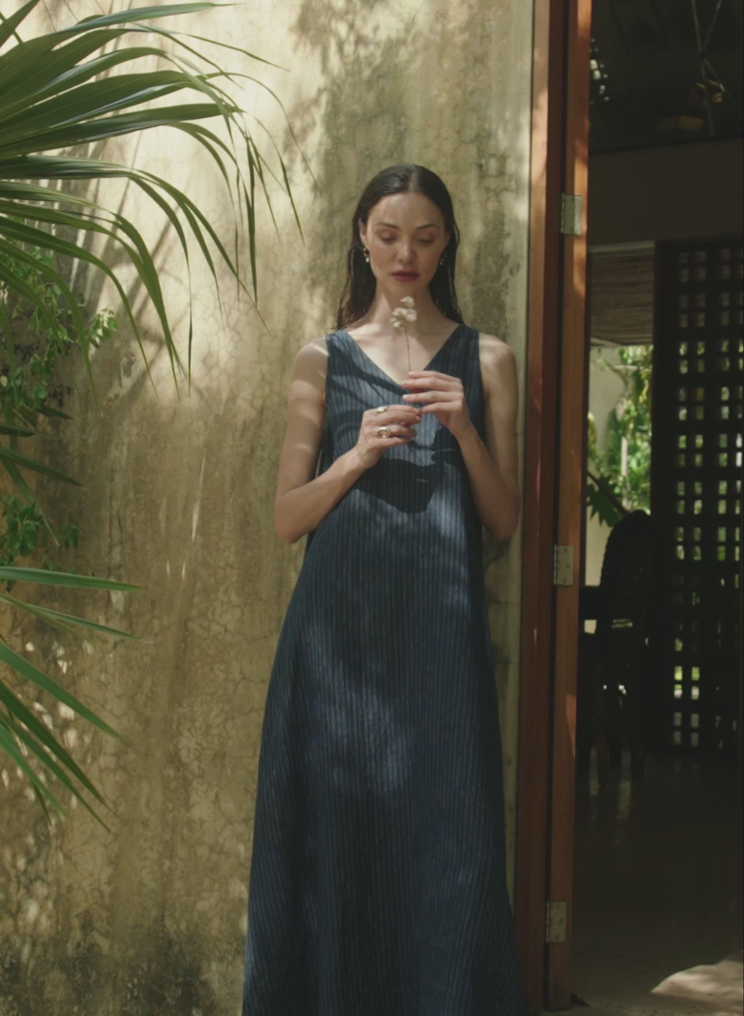 Vestido largo confeccionado en 100% lino, una fibra natural fresca, ligera y transpirable, ideal para climas cálidos. Su diseño de tirantes angostos y escote en “V” aporta un toque femenino y elegante que estiliza la silueta.