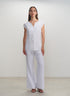 Blusa sin mangas en 100% lino, una prenda fresca y femenina en un impecable color blanco. Perfecta para añadir un toque de elegancia relajada a tus looks de diario.